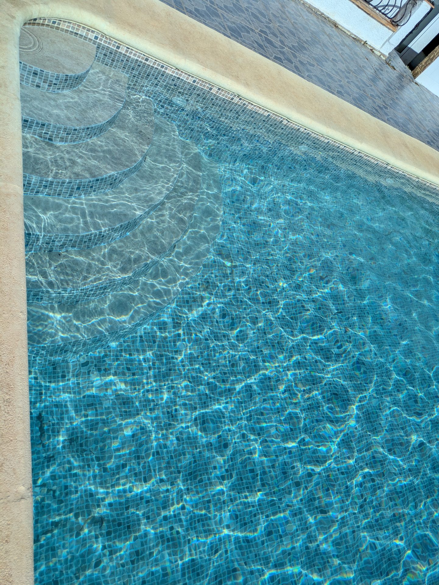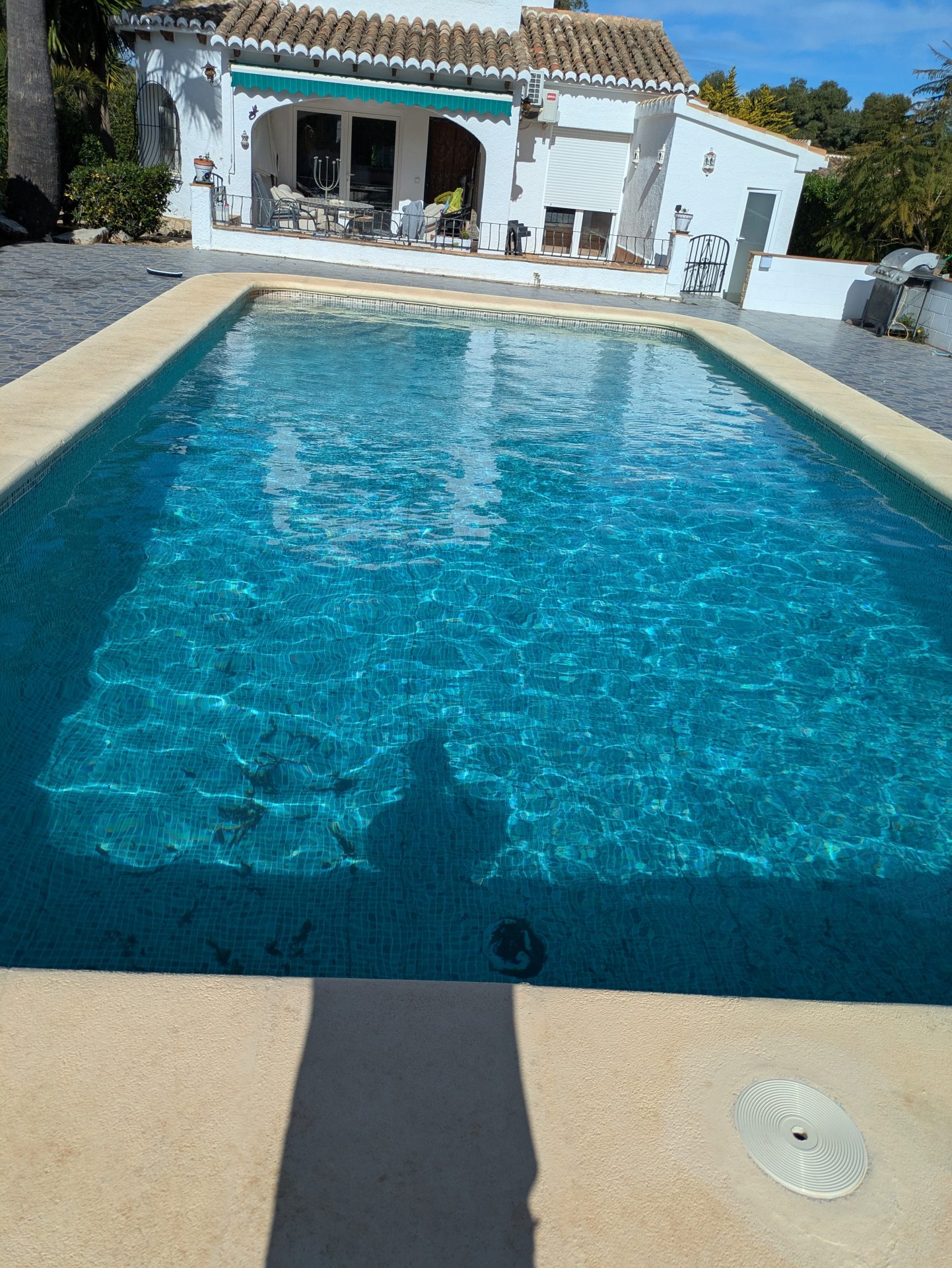Esta piscina privada de 10 x 5 m de nuestros clientes ingleses tenía numerosas grietas y la única alternativa a una nueva construcción era un revestimiento de lámina.